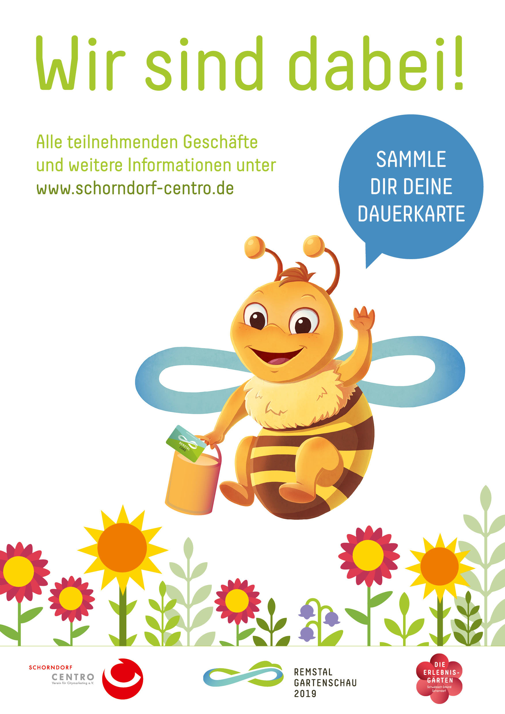 Wer regelmäßig in Schorndorf einkauft, kriegt die Dauerkarte für die Remstal Gartenschau 2019 (RemstalCard) geschenkt. Die RemstalCard kostet regulär 45 € (im Vorverkauf 40 €) und ermöglicht zwischen 10. Mai und 22. September 2019 den kostenlosen Eintritt in die eintrittspflichten Erlebnisgärten in Schwäbisch Gmünd und Schorndorf. Zu jeder Dauerkarte gibt es zudem ein Gutscheinbuch mit vielen attraktiven Mehrwertangeboten und einen Reiseführer „Remstal“ kostenlos obendrauf.